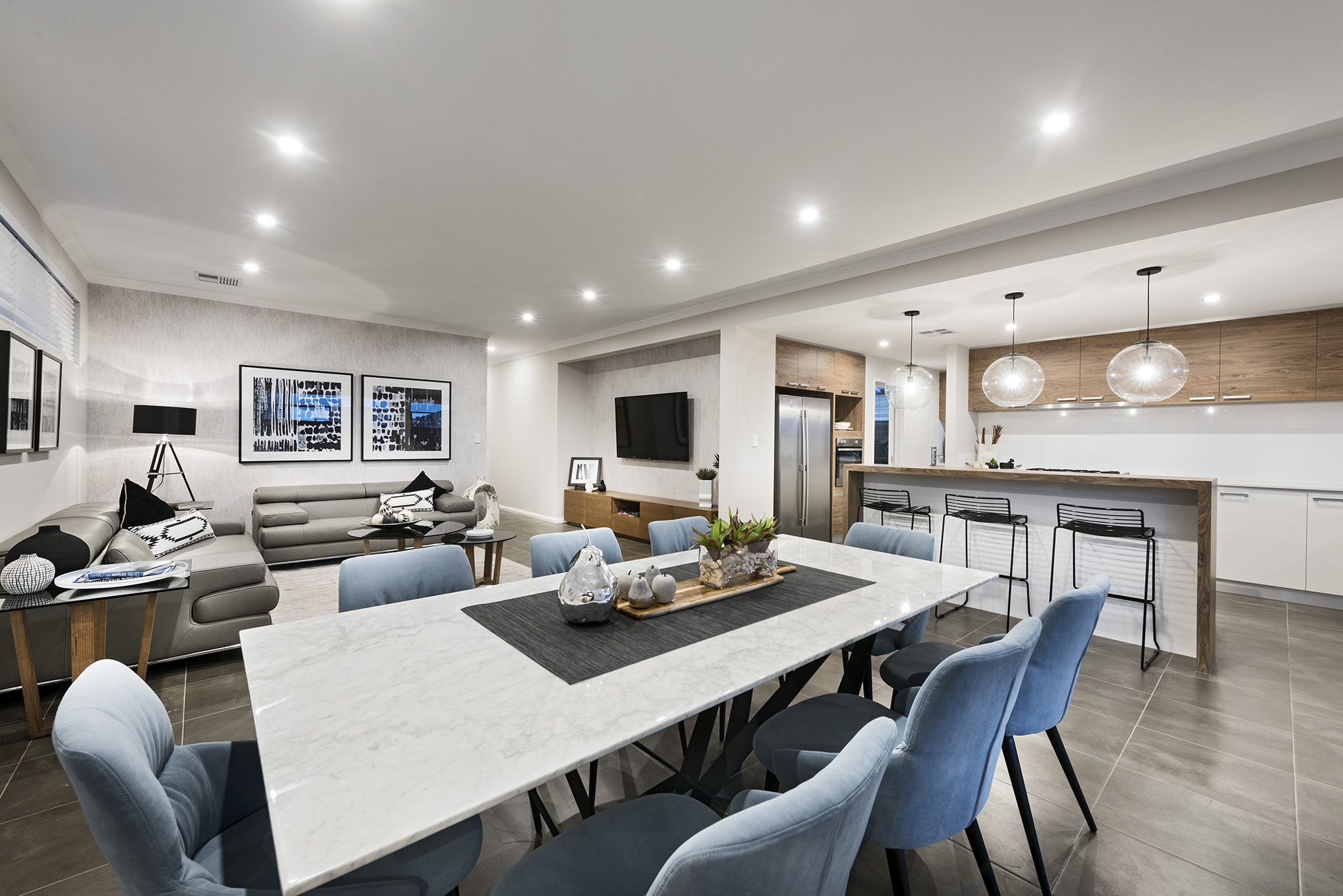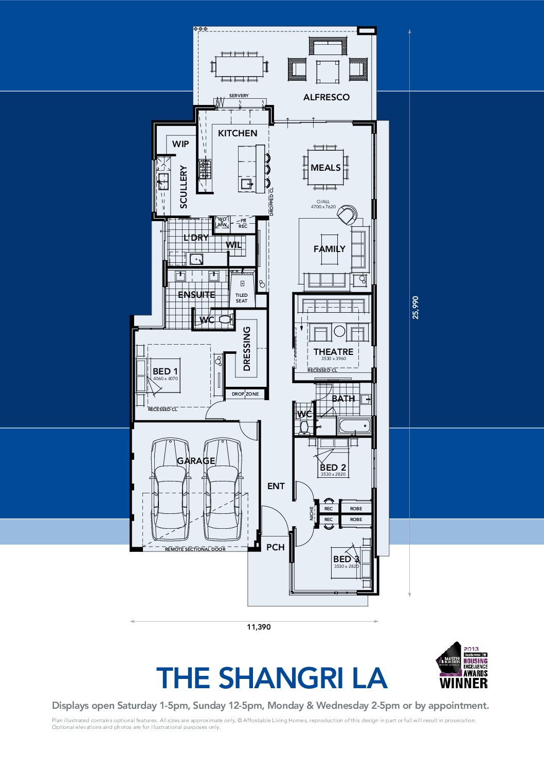 Step into the Shangri-La by Affordable Living Homes, a beautifully designed 3 bedroom, 2 bathroom home that perfectly balances modern functionality with resort-inspired luxury. From the moment you arrive, the impressive 1200mm wide front door and soaring 31-course ceilings throughout set the tone for a home that feels both spacious and refined. Cleverly designed for growing families or those who love to entertain, the open-plan layout seamlessly connects the gourmet deluxe kitchen, family, and meals area. A stylish kitchen features a dedicated scullery, while a bifold servery window creates an effortless connection to the alfresco, perfect for indoor-outdoor entertaining. Theatre nights are sorted with a dedicated home theatre room, while bedrooms 2 and 3 come complete with built-in sliding robes for extra convenience. Retreat to your private sanctuary in the master suite, where a resort-inspired ensuite boasts double vanities, double shower recess with a tiled seat and a large dressing room, your personal oasis after a long day. The Shangri-La is proof that luxury and affordability can coexist where thoughtful design meets everyday comfort.